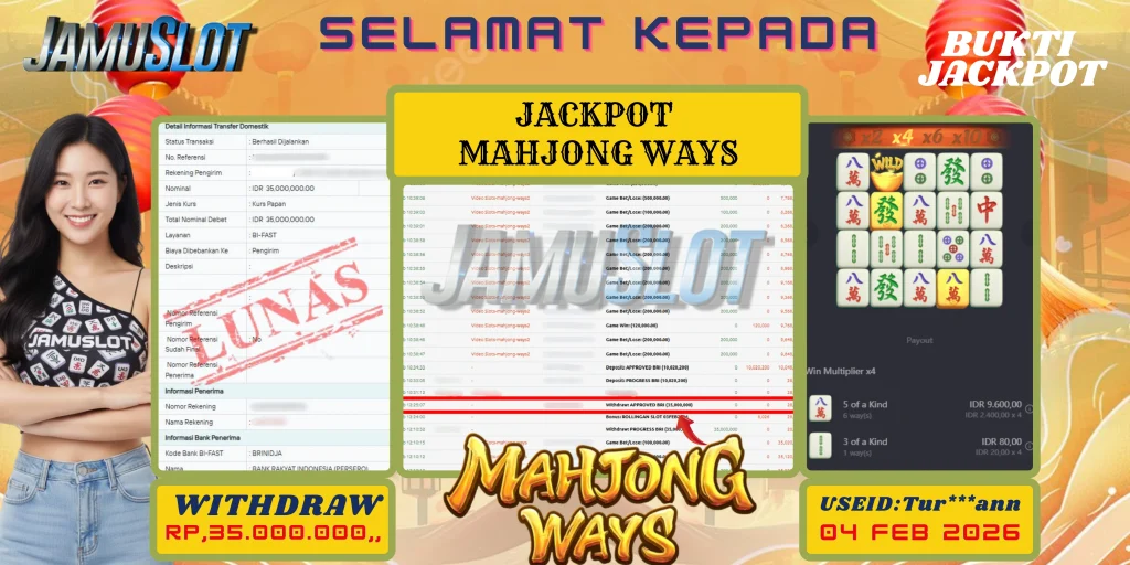 BUKTI PEMBAYARAN KEMENANGAN JP MAHJONG WAYS 35.000.000,- LUNAS