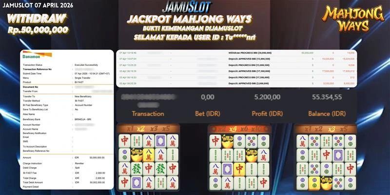 BUKTI PEMBAYARAN KEMENANGAN JP MAHJONG WAYS 50.000.000,- LUNAS