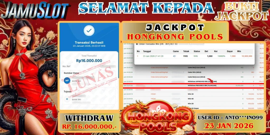BUKTI PEMBAYARAN KEMENANGAN JP HONGKONG POOLS SEBESAR 16.000.000,- LUNAS