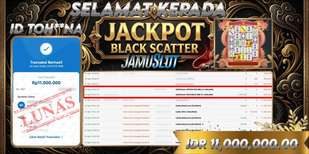 BUKTI PEMBAYARAN KEMENANGAN JP MAHJONG WINS 3 11.000.000,- LUNAS