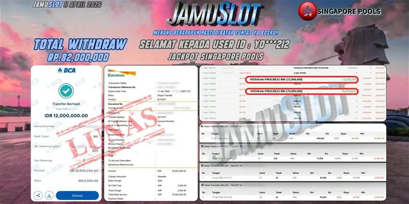 BUKTI PEMBAYARAN KEMENANGAN JP SINGAPORE POOLS 82.000.000,- LUNAS