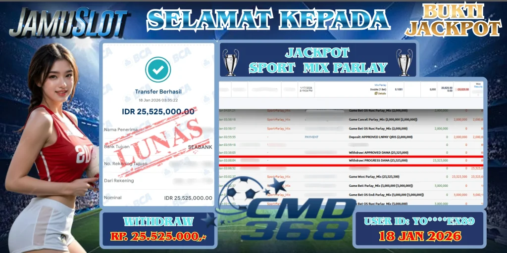 BUKTI PEMBAYARAN KEMENANGAN JP SPORT MIX PARLAY SEBESAR 25.525.000,- LUNAS