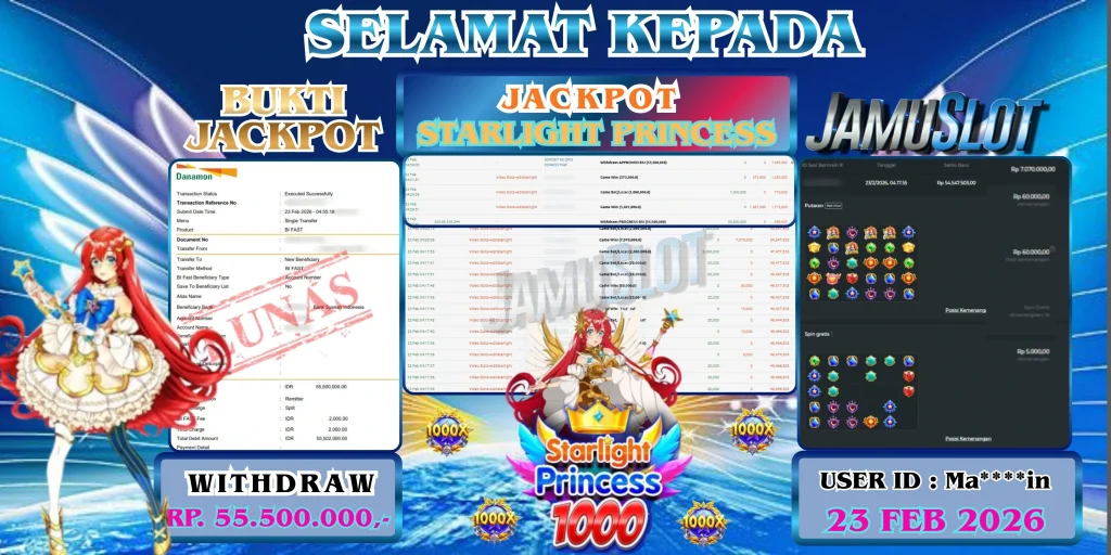 BUKTI PEMBAYARAN KEMENANGAN JP STARLIGHT PRINCESS 55.500.000,- LUNAS
