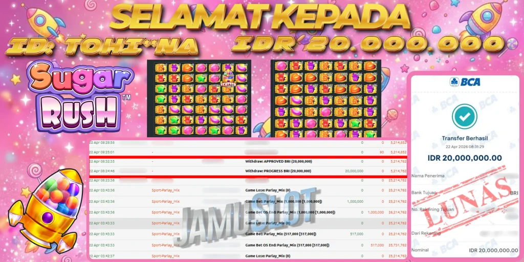 BUKTI PEMBAYARAN KEMENANGAN JP SUGAR RUSH 20.000.000,- LUNAS