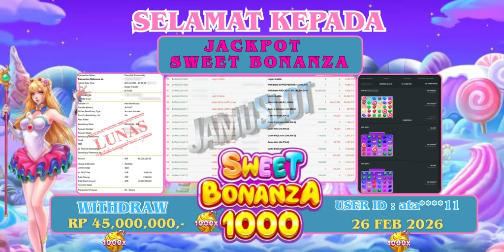 BUKTI PEMBAYARAN KEMENANGAN JP SWEET BONANZA 45.000.000,- LUNAS