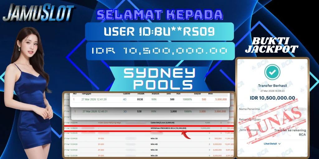 BUKTI PEMBAYARAN KEMENANGAN JP SYDNEY POOLS 10,500,000,- LUNAS