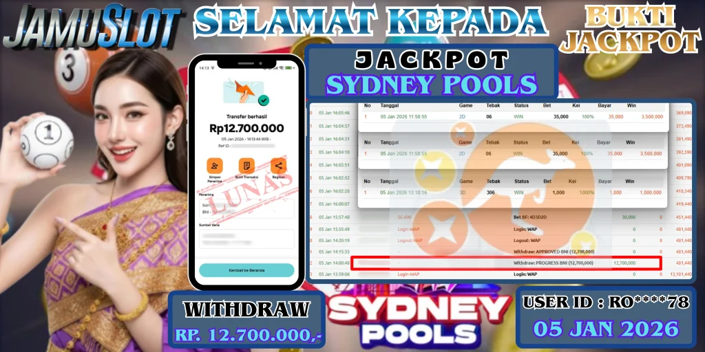 BUKTI PEMBAYARAN KEMENANGAN JP SYDNEY POOLS SEBESAR 12.700.000,- LUNAS