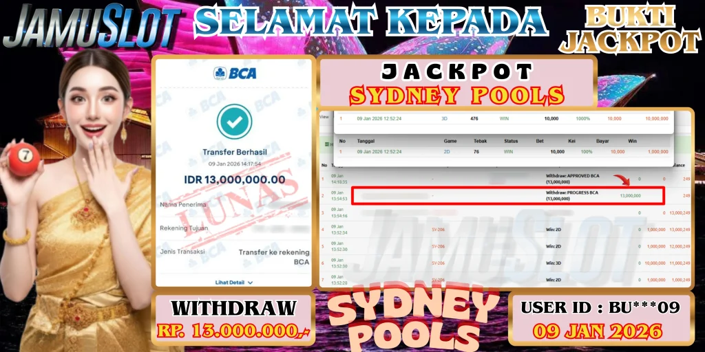 BUKTI PEMBAYARAN KEMENANGAN JP SYDNEY POOLS SEBESAR 13.000.000,- LUNAS