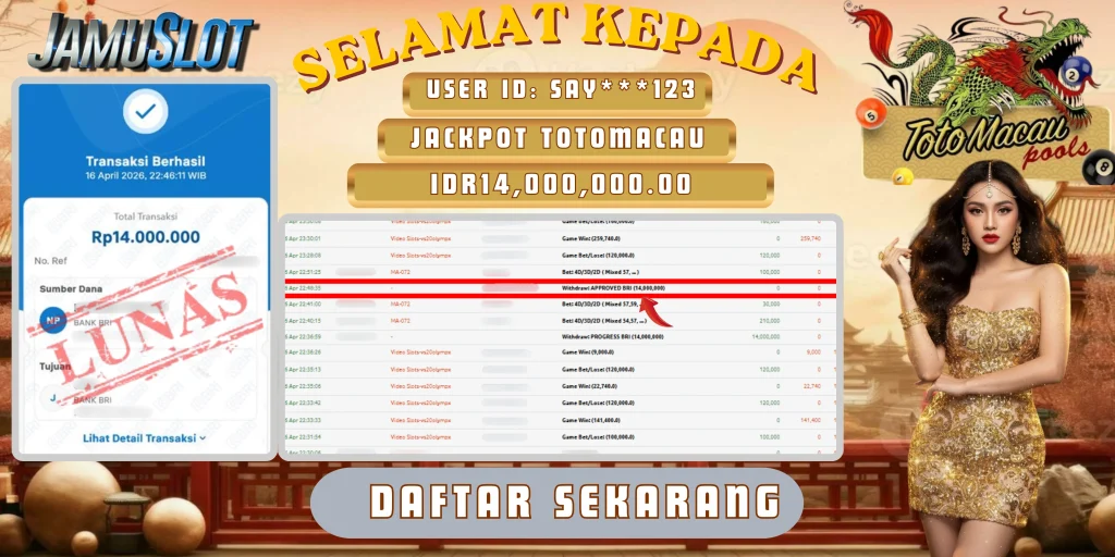 BUKTI PEMBAYARAN KEMENANGAN JP TOTO MACAU 14.000.000,- LUNAS