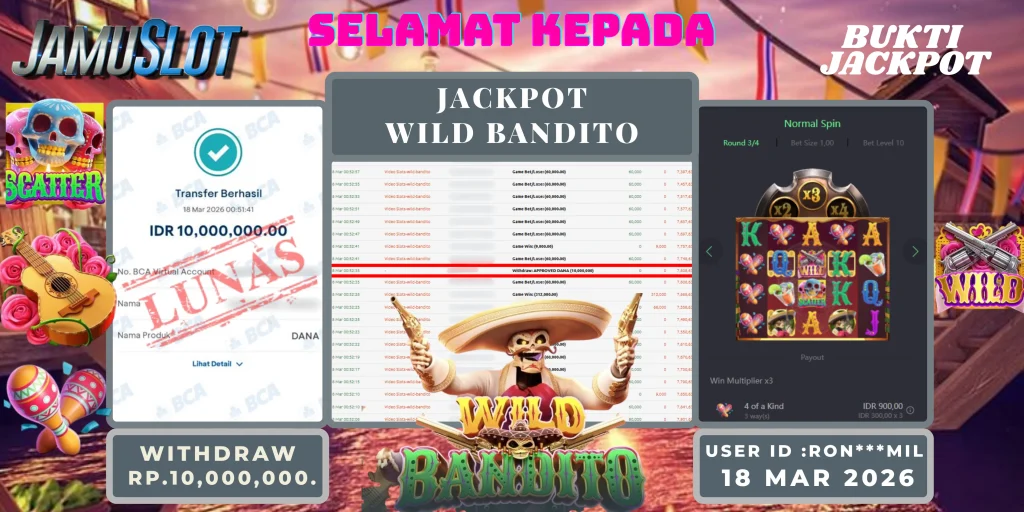 BUKTI PEMBAYARAN KEMENANGAN JP WILD BANDITO 10.000.000,- LUNAS