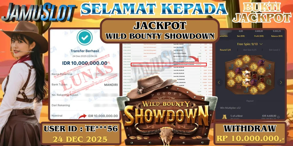 BUKTI PEMBAYARAN KEMENANGAN JP WILD BOUNT SHOWDOWN SEBESAR 10.000.000,- LUNAS