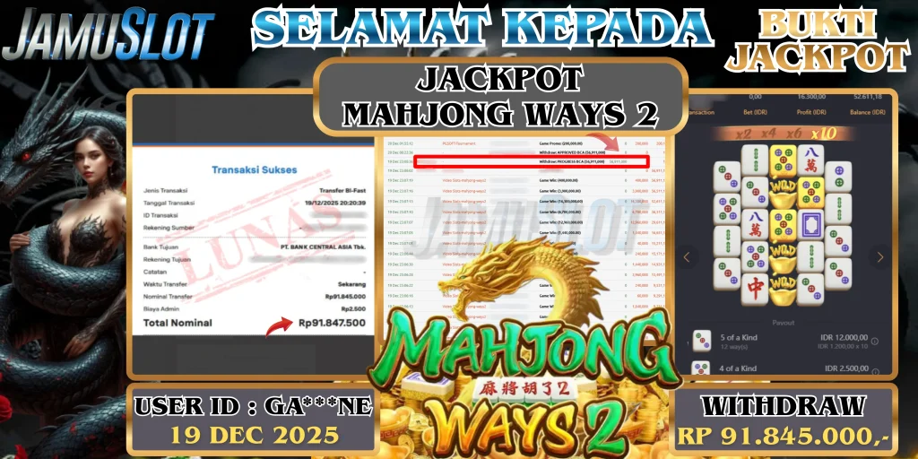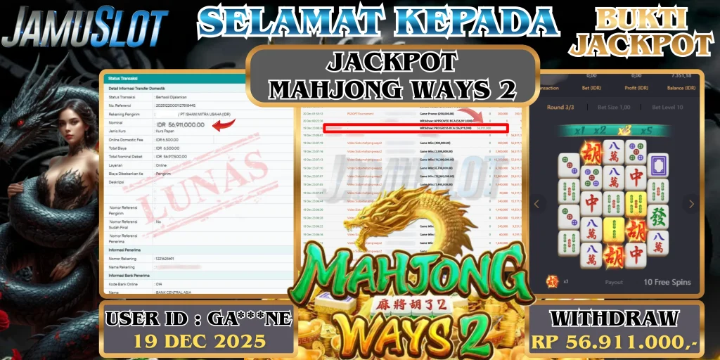 BUKTI PEMBAYARAN KEMENANGAN JP LUCKY NEKO SEBESAR 52.000.000,- LUNAS