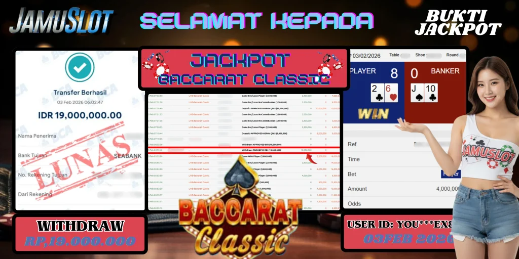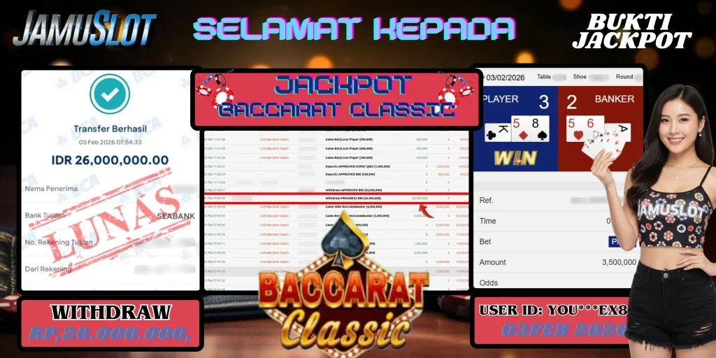 BUKTI PEMBAYARAN KEMENANGAN JP BACCARAT CLASSIC 26.000.000,- LUNAS