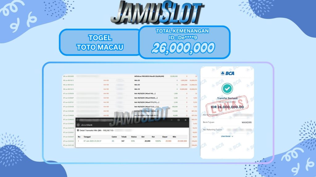 BUKTI PEMBAYARAN JAMUSLOT BUKAN KALENG KALENG INI BOSKU, MENANG BERAPAPUN PASTI DI BAYAR TUNTAS !!! Daftar Akun JAMUSLOT Info Menarik bagi kalian yang tertarik untuk main togel online di BO Togel Terpercaya JAMUSLOT, bisa join member dengan lakukan pendaftaran terlebih dahulu. Proses buat akun sangat cepat dan aman. Gunakan data pribadi yang lengkap untuk …