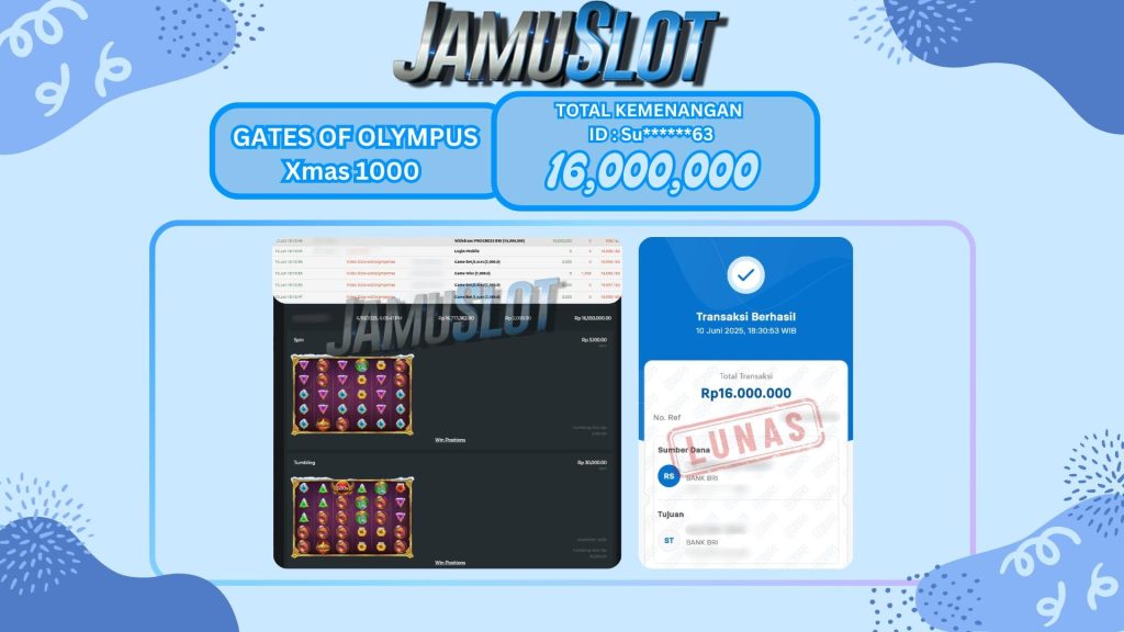 BUKTI PEMBAYARAN KEMENANGAN JP GATES OF OLYMPUS Xmas1000 16.000.000,- LUNAS