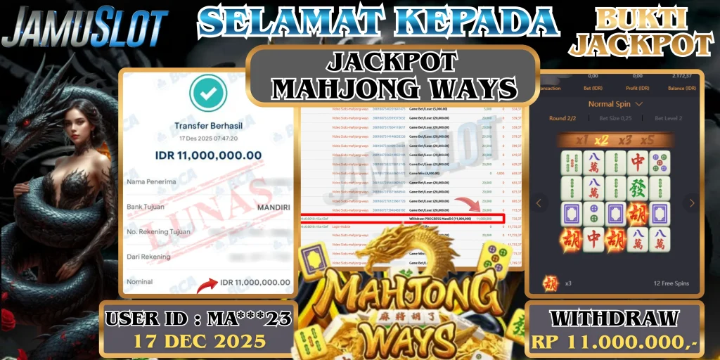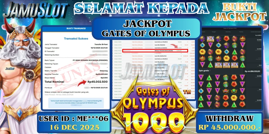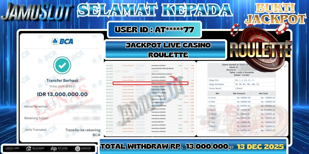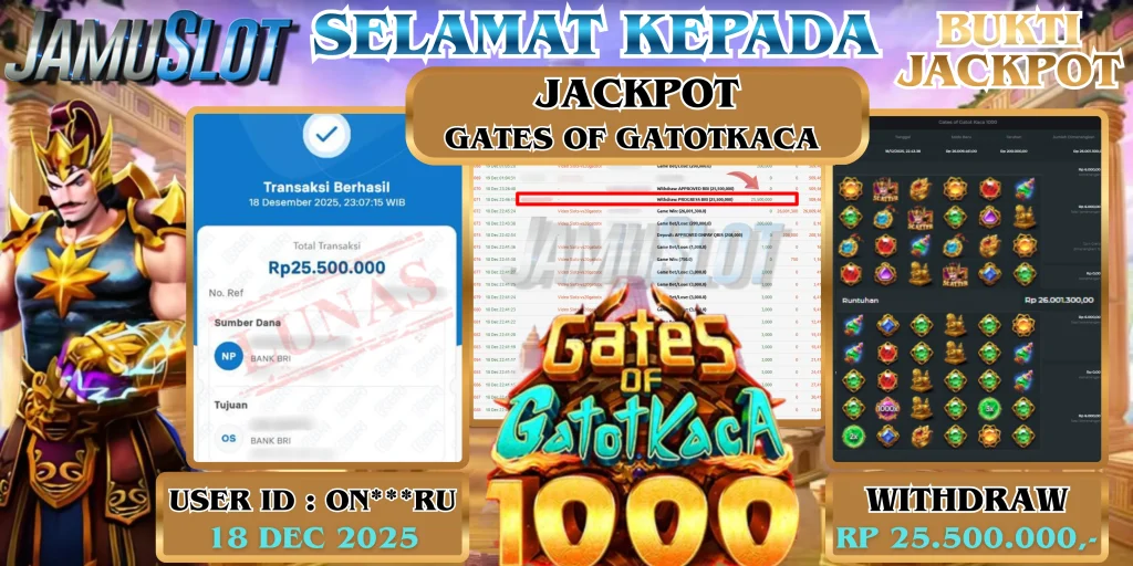 BUKTI PEMBAYARAN KEMENANGAN JP GATES OF GATOTKACA 1000 25.500.000,- LUNAS