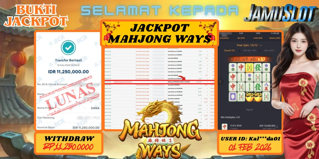 BUKTI PEMBAYARAN KEMENANGAN JP MAHJONG WAYS SEBESAR 11.250.000,- LUNAS