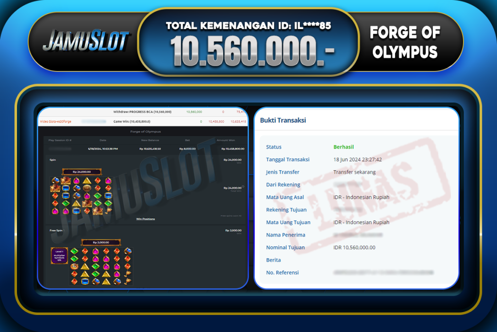 Bukti JP FORGE OF OLYMPUS 1000 Di Bayar LUNAS Situs JamuSlot Amanah Sebesar Rp.10.560.000,-