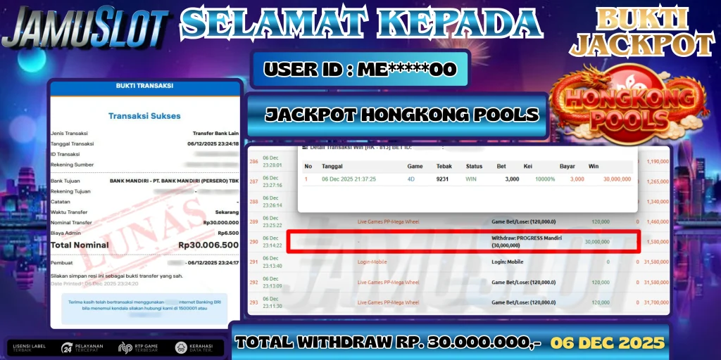 BUKTI PEMBAYARAN KEMENANGAN JP DRAGON TIGER SEBESAR 122.000.000,- LUNAS