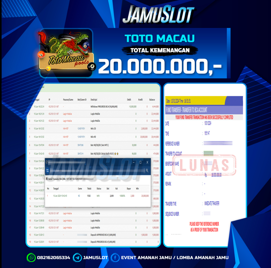 JAMUSLOT : BUKTI PEMBAYARAN KEMENANGAN JP TOGEL TOTO MACAU SEBESAR 22,000,000,- LUNAS