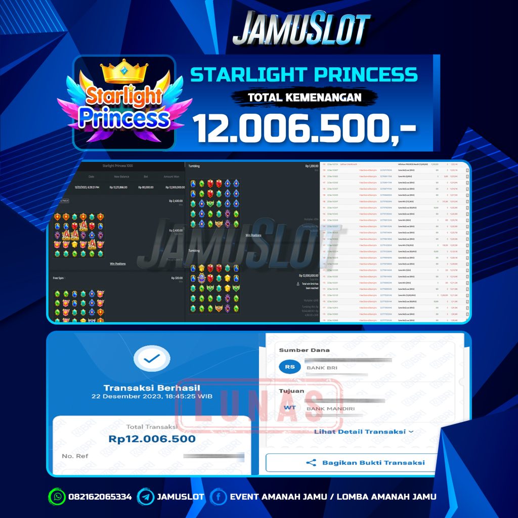 JAMUSLOT : BUKTI PEMBAYARAN KEMENANGAN JP SLOT STARLIGHT PRINCESS SEBESAR 12.006.500,- LUNAS