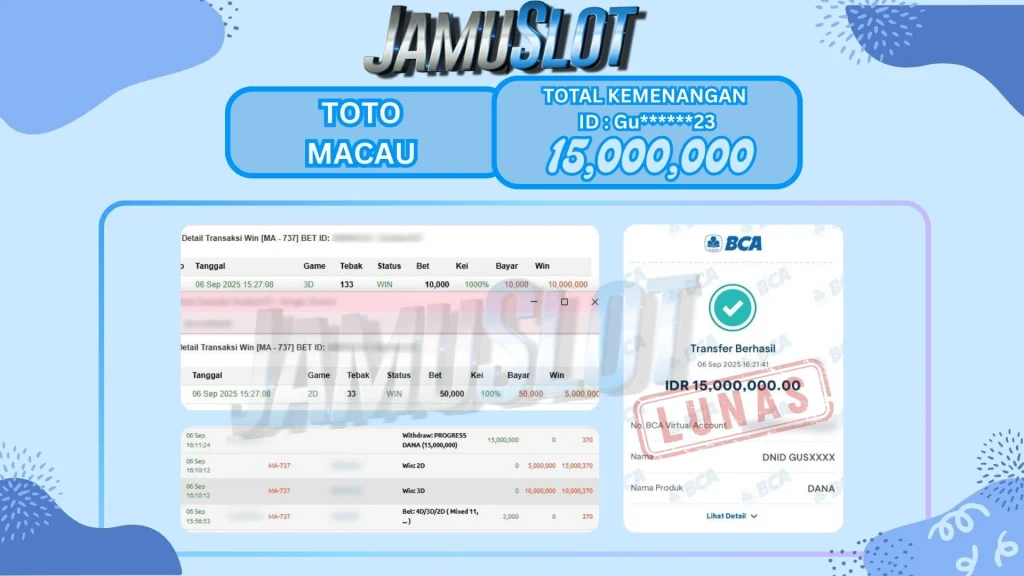 BUKTI PEMBAYARAN JAMUSLOT BUKAN KALENG KALENG INI BOSKU, MENANG BERAPAPUN PASTI DI BAYAR TUNTAS !!! Daftar Akun JAMUSLOT Info Menarik bagi kalian yang tertarik untuk main togel online di BO Togel Terpercaya JAMUSLOT, bisa join member dengan lakukan pendaftaran terlebih dahulu. Proses buat akun sangat cepat dan aman. Gunakan data pribadi yang lengkap untuk pembuatan …