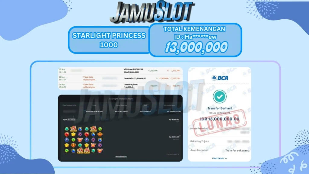 BUKTI PEMBAYARAN KEMENANGAN JP STARLIGHT PRINCESS 13.000.000,- LUNAS